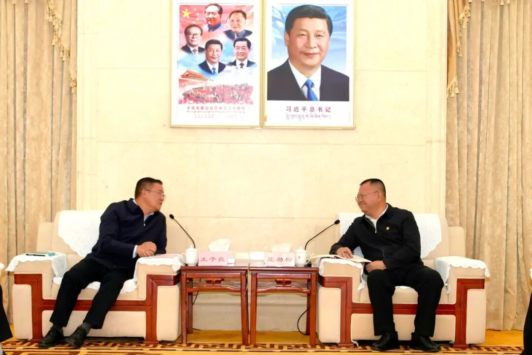 10月15日,市委书记庄劲松与中国建设银行西藏自治区分行党委书记、行长王子良一行座谈。