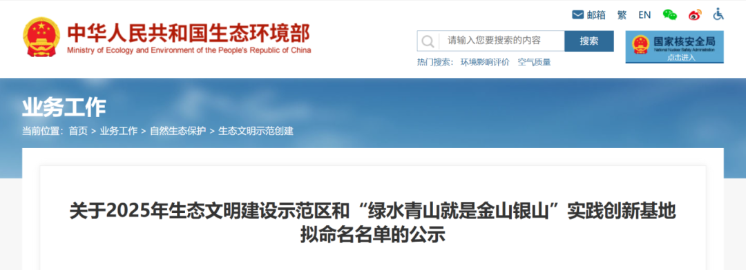 为公开、公平地开展生态文明建设示范区和“绿水青山就是金山银山”实践创新基地评选工作,现对2025年生态文明建设示范区和“绿水青山就是金山银山”实践创新基地拟命名名单进行公示: