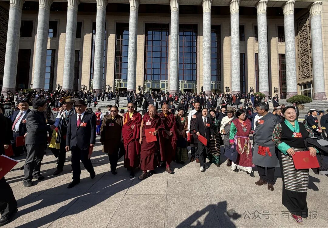 人民的殿堂红旗猎猎,28名住藏全国政协委员满怀信心与豪情步入人民大会堂,出席全国政协十四届四次会议闭幕会。