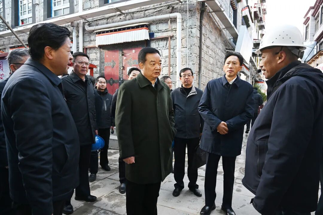 作为城市建设的重要组成部分,拉萨八廓古城保护与旧城改造提升工程有序推进。王君正沿着古城街巷步行察看,先后来到格林夏居民大院、喜德寺大院,实地了解历史建筑修缮维护、传统风貌保护、基础设施更新等工作推进情况。他强调,要坚持以人民为中心的发展思想,牢固树立和践行正确政绩观,正确处理好城市发展建设与历史文化遗产保护的关系,注重中华民族共同体符号表达,把铸牢中华民族共同体意识融入城市规划建设管理全过程,构筑中华民族共有精神文化家园。要坚持守正创新,遵循“修旧如旧”原则,最大限度保留历史真实性、风貌完整性、文化延续性,持续推进线路规整、管网改造、道路优化等民生工程,不断增强各族群众获得感幸福感安全感。